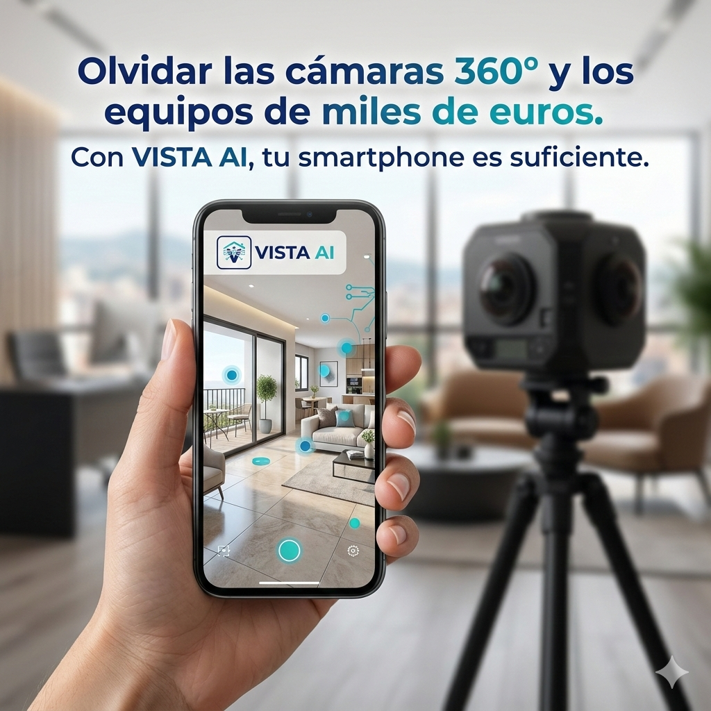 Con VISTA AI, tu smartphone es suficiente. La automatización inmobiliaria ya no es exclusiva de las grandes franquicias: democratizamos la tecnología de tours virtuales para que puedas ofrecer servicios de lujo en todo tu catálogo de propiedades, no solo en las exclusivas.