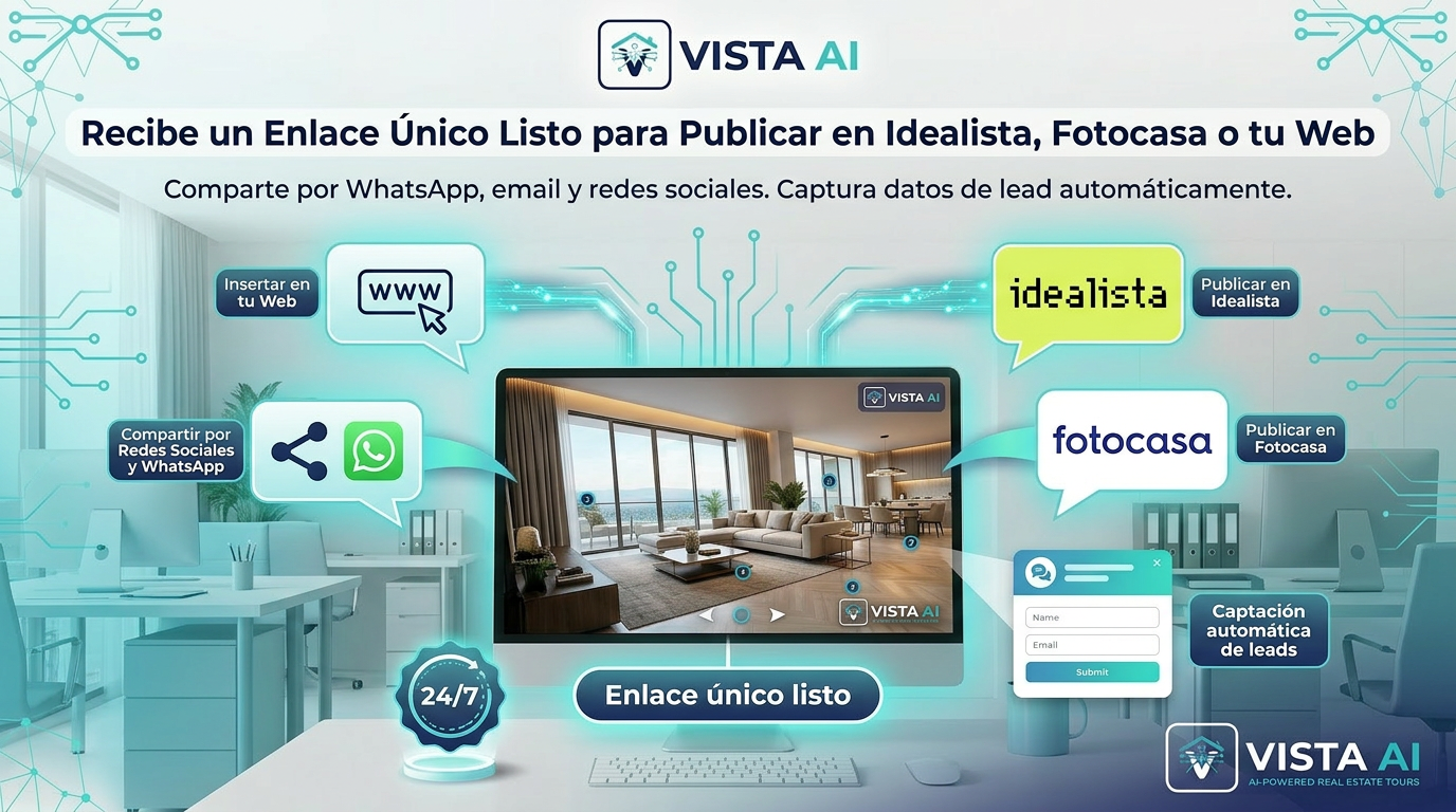 Sí, VISTA AI genera enlaces compatibles con los principales portales inmobiliarios de España, mejorando instantáneamente el posicionamiento y la visibilidad de tus anuncios.